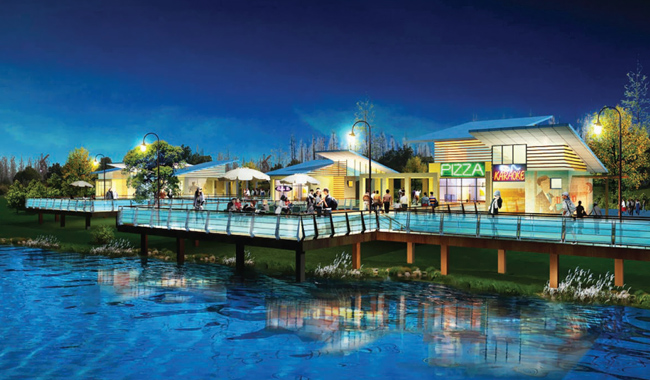 大学城商业中心在其南侧,规划中占地100亩的文化艺术展览中心与项目隔一天然水库相望,东方龙湖湾总占地约465亩,其中建设用地297亩,配套教育用地20亩。商业部分定位为第三代社区商业国际生活街区,量身定做了升级版的社区商业配置。服务于东方龙湖湾及周边的中高档住宅,辐射大学城内的教师、学生及为科学园内各类研发机构与开发区企业公务消费客群。