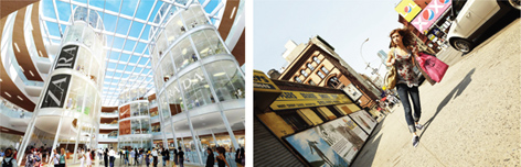 是人流聚集的一个主要场所,室内空间既设置了集中商业,又有零散店铺,是西方现代MALL与中国传统商铺的有机组合。